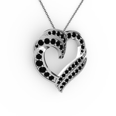 Siyah zirkon 14 ayar beyaz altın kolye (40 cm gümüş rolo zincir)
