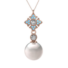Akuamarin 14 ayar rose altın kolye (40 cm rose altın rolo zincir)