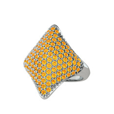 Siyah inci ve sitrin 18 ayar beyaz altın yüzük