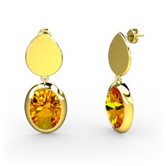 Dumanlı kuvars ve rodolit garnet 18 ayar altın küpe
