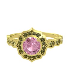 Pembe kuvars ve garnet 18 ayar altın yüzük