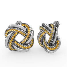 Dumanlı kuvars 18 ayar beyaz altın küpe