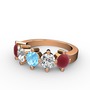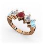 Akuamarin, beyaz zirkon ve kök yakut 14 ayar rose altın yüzük