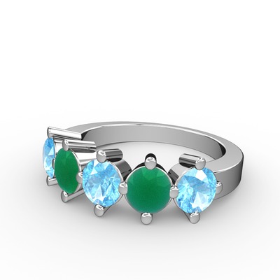 Akuamarin ve kök zümrüt 925 ayar gümüş yüzük