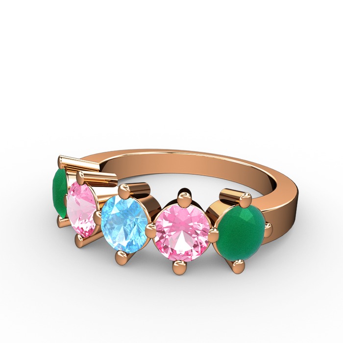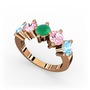 Akuamarin, pembe kuvars ve kök zümrüt 18 ayar rose altın yüzük