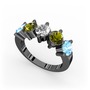 Akuamarin, peridot ve swarovski 925 ayar siyah rodyum kaplama gümüş yüzük
