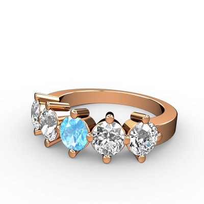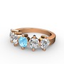 Akuamarin, pırlanta ve beyaz zirkon 925 ayar rose altın kaplama gümüş yüzük (1.32 karat)