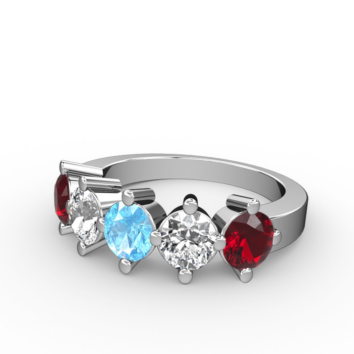 Akuamarin, pırlanta ve garnet 8 ayar beyaz altın yüzük (1.32 karat)
