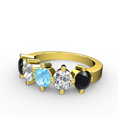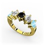 Akuamarin, pırlanta ve siyah zirkon 14 ayar altın yüzük (1.32 karat)
