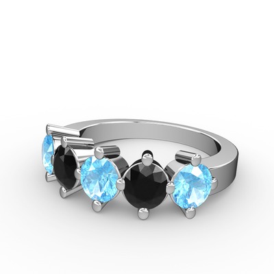 Akuamarin ve siyah zirkon 8 ayar beyaz altın yüzük