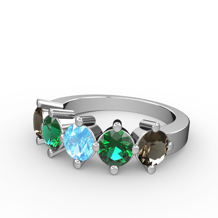 Akuamarin, yeşil kuvars ve dumanlı kuvars 925 ayar gümüş yüzük