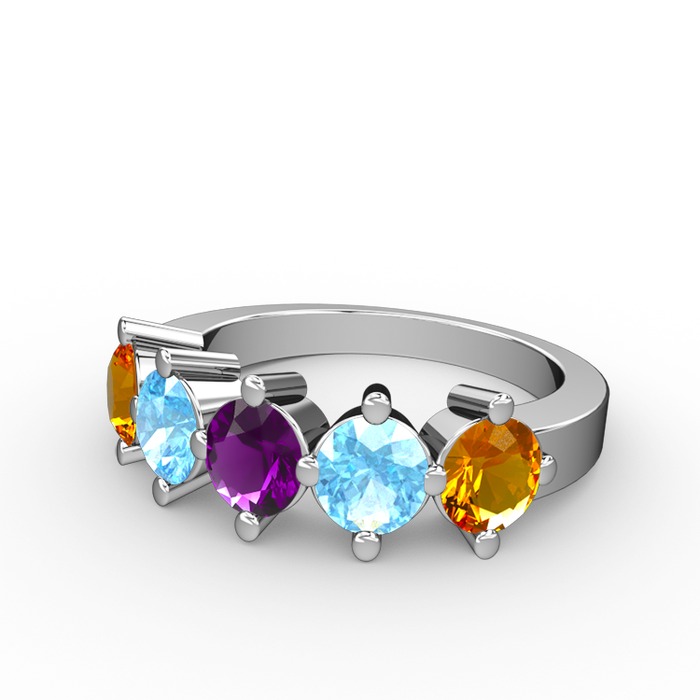 Ametist, akuamarin ve sitrin 18 ayar beyaz altın yüzük