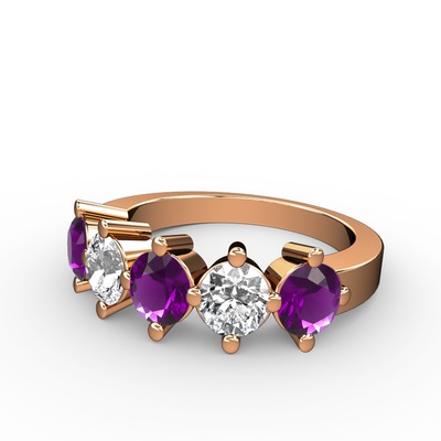 Ametist ve beyaz zirkon 14 ayar rose altın yüzük