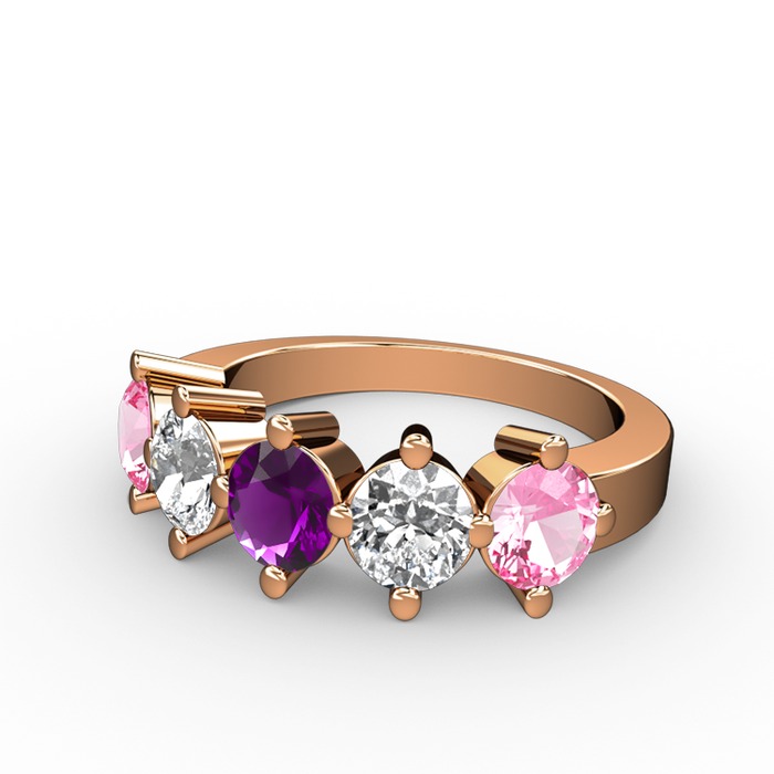 Ametist, beyaz zirkon ve pembe kuvars 18 ayar rose altın yüzük