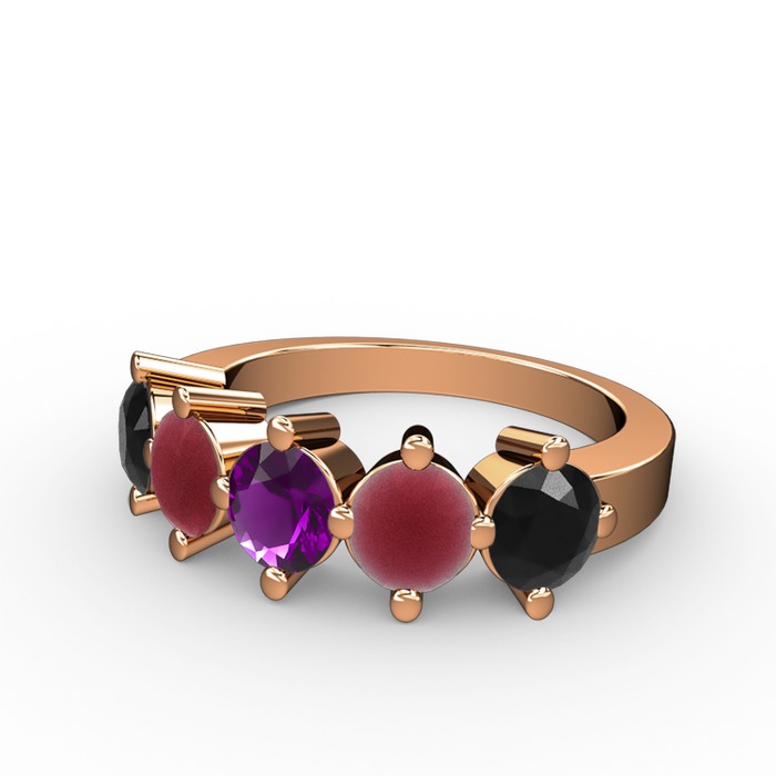 Ametist, kök yakut ve siyah zirkon 8 ayar rose altın yüzük