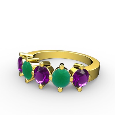 Ametist ve kök zümrüt 14 ayar altın yüzük