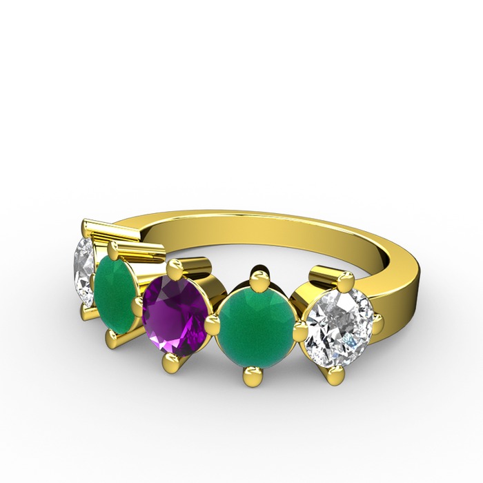 Ametist, kök zümrüt ve swarovski 8 ayar altın yüzük