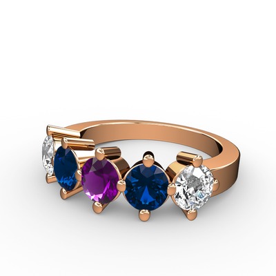 Ametist, lab safir ve pırlanta 18 ayar rose altın yüzük (1.32 karat)