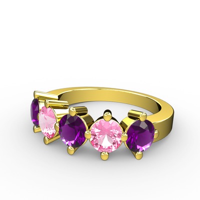 Ametist ve pembe kuvars 18 ayar altın yüzük