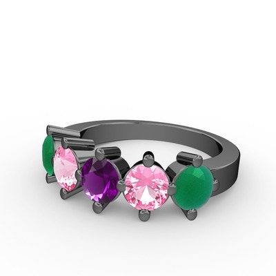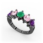 Ametist, pembe kuvars ve kök zümrüt 925 ayar siyah rodyum kaplama gümüş yüzük