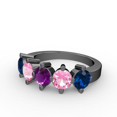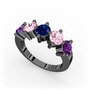 Ametist, pembe kuvars ve lab safir 925 ayar siyah rodyum kaplama gümüş yüzük