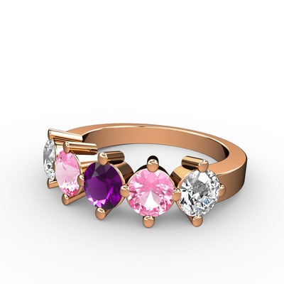 Ametist, pembe kuvars ve pırlanta 18 ayar rose altın yüzük (1.32 karat)