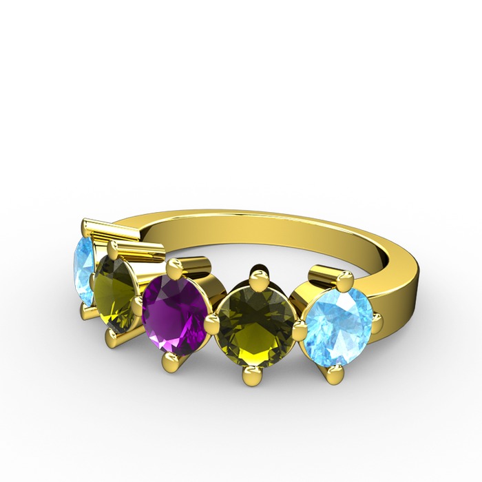Ametist, peridot ve akuamarin 18 ayar altın yüzük