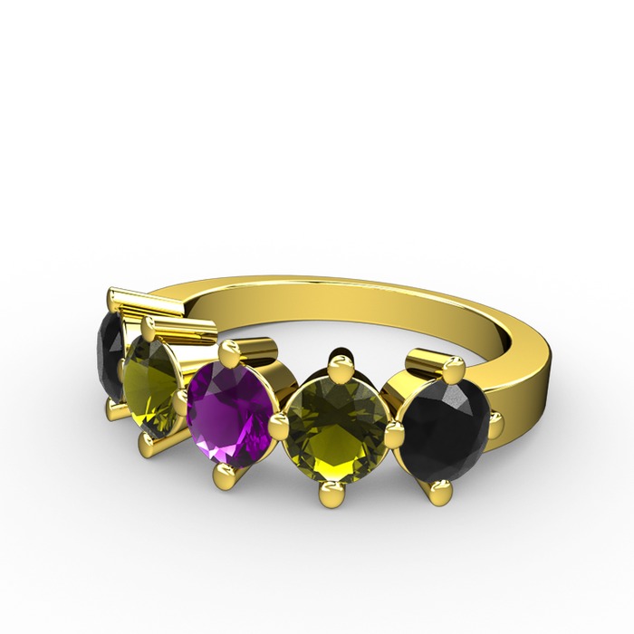 Ametist, peridot ve siyah zirkon 925 ayar altın kaplama gümüş yüzük