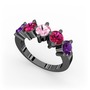 Ametist, rodolit garnet ve pembe kuvars 925 ayar siyah rodyum kaplama gümüş yüzük