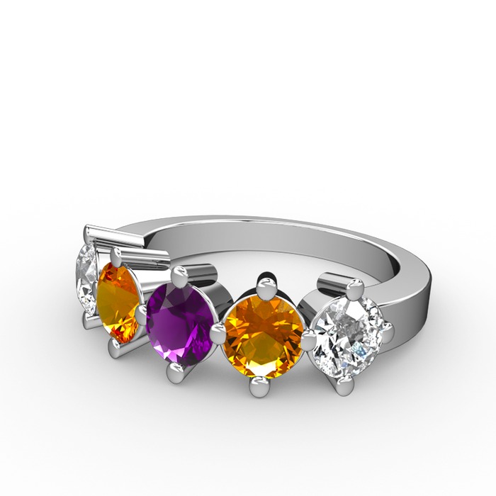 Ametist, sitrin ve pırlanta 8 ayar beyaz altın yüzük (1.32 karat)