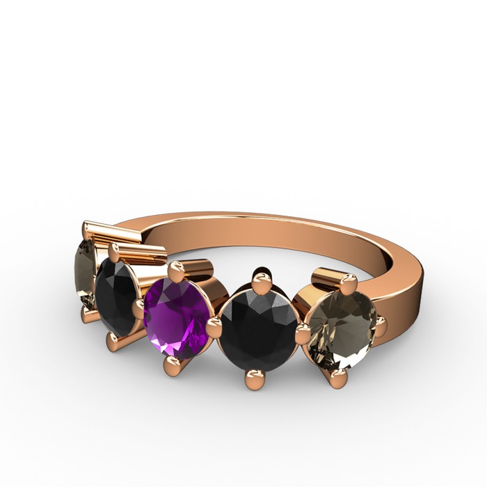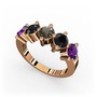 Ametist, siyah zirkon ve dumanlı kuvars 18 ayar rose altın yüzük