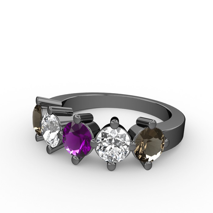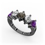 Ametist, swarovski ve dumanlı kuvars 925 ayar siyah rodyum kaplama gümüş yüzük