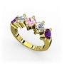Ametist, swarovski ve pembe kuvars 925 ayar altın kaplama gümüş yüzük