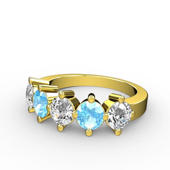 Beyaz zirkon, akuamarin ve pırlanta 18 ayar altın yüzük (1.32 karat)