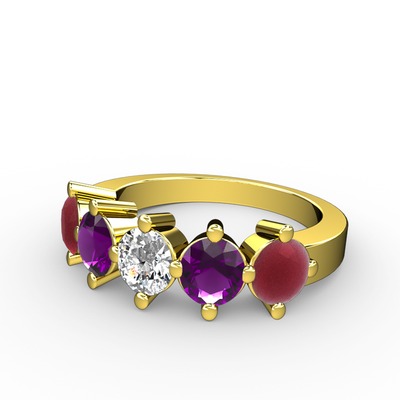 Beyaz zirkon, ametist ve kök yakut 18 ayar altın yüzük