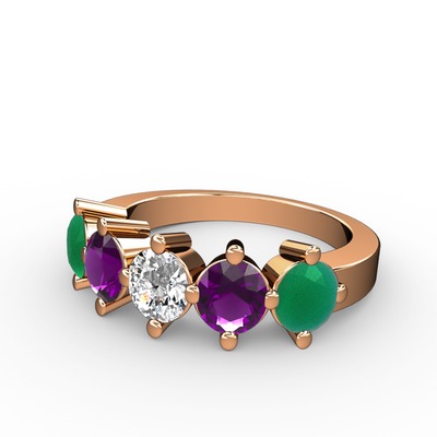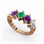 Beyaz zirkon, ametist ve kök zümrüt 14 ayar rose altın yüzük