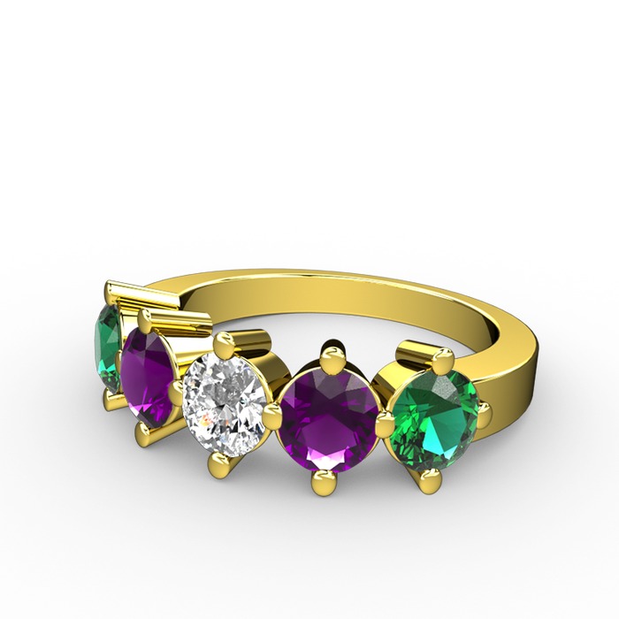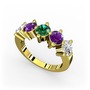 Beyaz zirkon, ametist ve yeşil kuvars 14 ayar altın yüzük