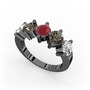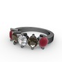 Beyaz zirkon, dumanlı kuvars ve kök yakut 925 ayar siyah rodyum kaplama gümüş yüzük