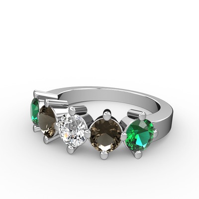 Beyaz zirkon, dumanlı kuvars ve yeşil kuvars 14 ayar beyaz altın yüzük