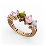 Beyaz zirkon, pembe kuvars ve peridot 14 ayar rose altın yüzük