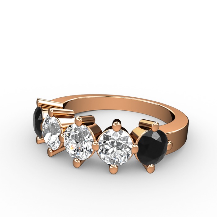 Beyaz zirkon, pırlanta ve siyah zirkon 14 ayar rose altın yüzük (1.32 karat)