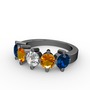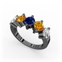 Beyaz zirkon, sitrin ve lab safir 925 ayar siyah rodyum kaplama gümüş yüzük
