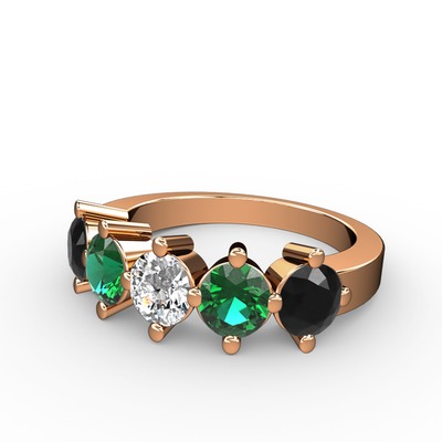 Beyaz zirkon, yeşil kuvars ve siyah zirkon 925 ayar rose altın kaplama gümüş yüzük