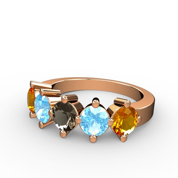Dumanlı kuvars, akuamarin ve sitrin 14 ayar rose altın yüzük