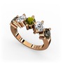 Dumanlı kuvars, beyaz zirkon ve peridot 8 ayar rose altın yüzük