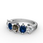 Dumanlı kuvars, lab safir ve beyaz zirkon 14 ayar beyaz altın yüzük
