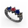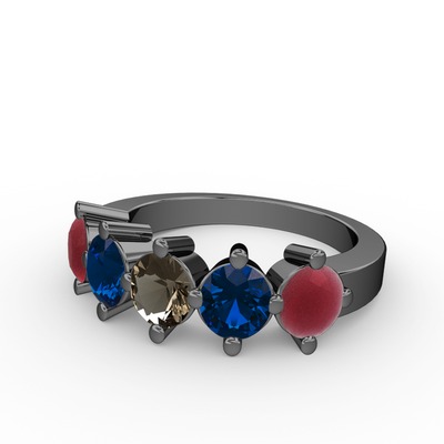 Dumanlı kuvars, lab safir ve kök yakut 925 ayar siyah rodyum kaplama gümüş yüzük
