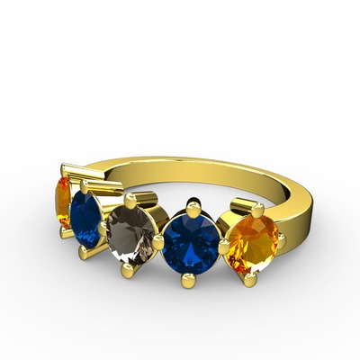 Dumanlı kuvars, lab safir ve sitrin 18 ayar altın yüzük