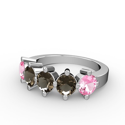 Dumanlı kuvars ve pembe kuvars 14 ayar beyaz altın yüzük