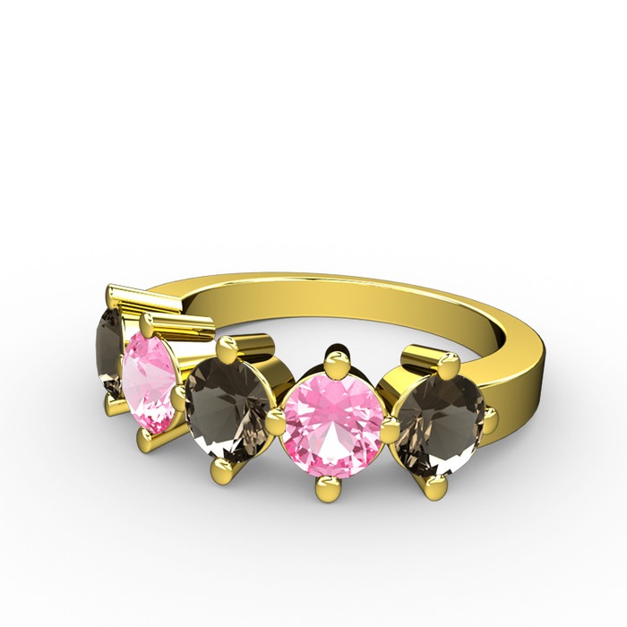 Dumanlı kuvars ve pembe kuvars 18 ayar altın yüzük